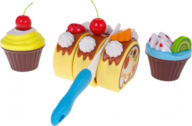 Børn kan pynte kagen og rouladen frit med frugt, glasurer og lys, servere på tallerkener og holde deres egen fest. Det rige tilbehør understøtter social leg, kommunikation og fantasi.