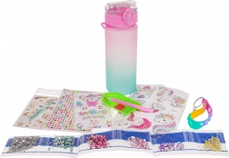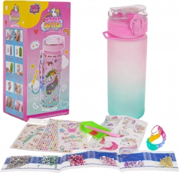 Denne farverige vandflaske til børn med enhjørningemotiv understøtter kreativitet, finmotorik og fantasi. Sættet indeholder et rigt udvalg af klistermærker, sten og værktøjer, så børn kan personliggøre deres flaske helt unikt. Det praktiske låg med lås gør åbningen nem og er tæt, så drikken ikke spildes.