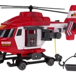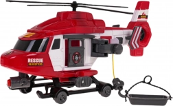Helikopteren har åbningsbare sidedøre, en manuelt betjent krog med transportkurv og rotorer, der kan sættes i rotation. LED-lys foran og autentiske flyve- og alarmlyde giver spænding til hver mission. Legetøjet drives af batterier 3× AG13 (medfølger), så det kan bruges med det samme.
