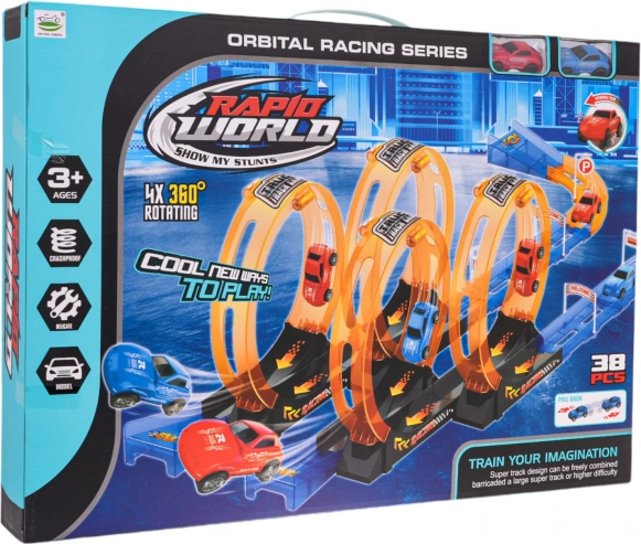 Store 360° loops tester både fart og stabilitet. Børnene får en jævn kørsel og fede stunttricks på den sikre plastbane.