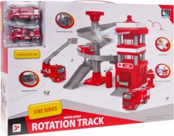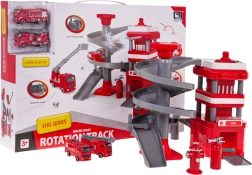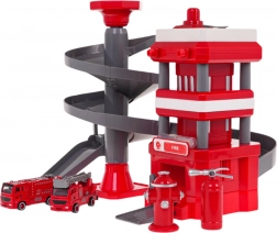 Brandstation med en flertrins spiralrampe, som gør det muligt for brandbiler at køre ned og dermed udvikle børns motoriske evner.