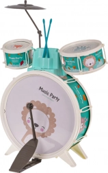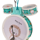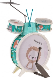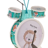 Bring glæde ind på børneværelset med dette børnetrommesæt. Det indeholder tre trommer med smukke dyremotiver af løve, æsel og ræv, desuden bækken og to trommestikker. Der medfølger også en komfortabel skammel for nem siddestilling under spil.