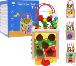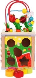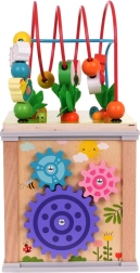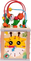 Den træ multifunktionelle terning er et fremragende redskab til dit barns udvikling. Den bringer mange interaktive elementer, der stimulerer finmotorik, fantasi og læring gennem leg. Legetøjet er lavet af kvalitets træ og malet med sikre farver, hvilket sikrer dets holdbarhed og lange levetid.