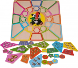 Uddannelsess0et er en fantastisk hj0elp til at le6re klokken og t0ellig. Den indeholder en farverig tavle med centrale ure og beve6gelige visere. Bf8rn kan indstille forskellige tidspunkter og tildele relevante tal og m0engde dyr. Hele s0ettet er lavet af hf8jkvalitets tr0e og malet med ikke-giftige farver i levende nuancer.
