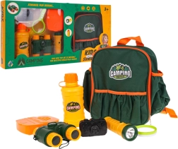 Lille Opdager-sæt er ideelt til nysgerrige børn fra 3 år, som gerne vil udforske verden. Sættet indeholder rygsæk, kikkert, lommelygte, lup, drikkebeholder, madkasse og kamera.