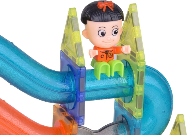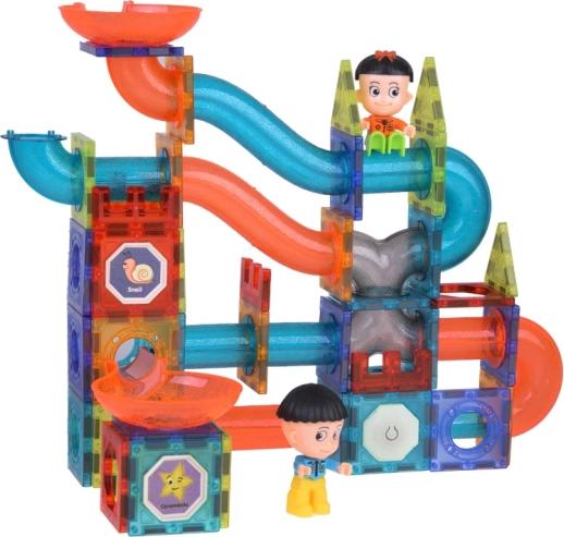 Gennemsigtige rør, sving og lysende kugler gør hvert slip til et show. Børn følger bane, hastighed og tyngdekraft – en legende introduktion til STEM.