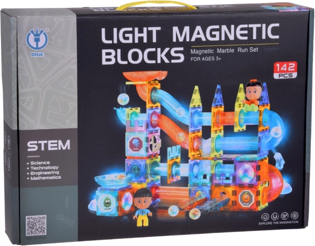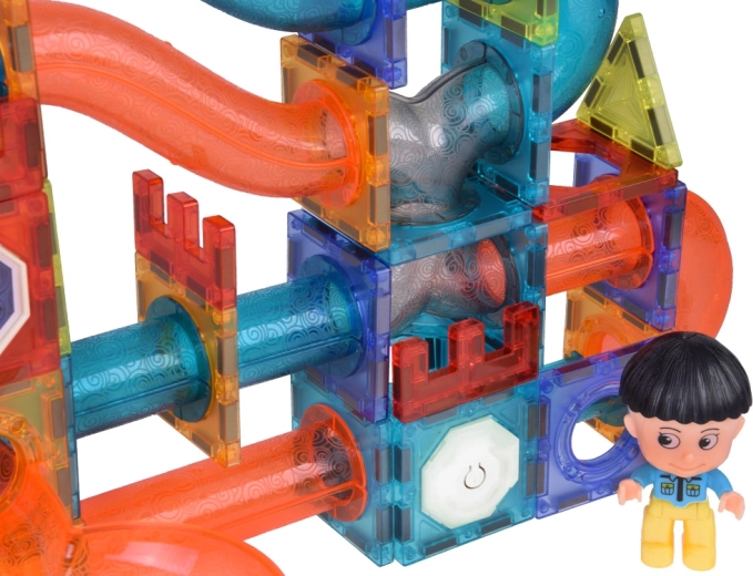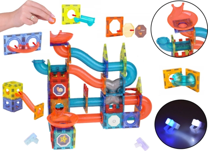 Dette farverige sæt af magnetiske klodser lader børn designe og bygge simple former samt komplekse 3D-konstruktioner og kuglebaner. Udvalgte dele er udstyret med LED-belysning, som skaber effektfulde lysgange for kuglerne og får enhver bygning til at lyse op. I pakken finder du også klistermærker og en overskuelig vejledning med inspiration.