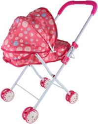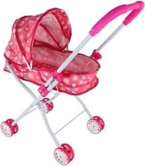 Forkæl din lille mor med en smuk dyb dukkevogn med blød stofliggedel. Takket være den lette metalramme og de robuste hjul er den nem for børn at håndtere både inde og ude. Stofdelene i lyserøde mønstre virker legesyge, og den omhyggelige udførelse sikrer lang holdbarhed.