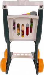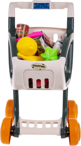 Interaktiv indkøbsvogn til børn fra 3 år, der kombinerer masser af leg og læring. Den har en stabil konstruktion, drejelige hjul og et betjeningspanel med lys og musik. Når du trykker på den blå knap, tændes blinkende LED-lys (grøn, rød, blå), og glade sange spiller. Sættet indeholder 41 tilbehørsdele til realistisk indkøbsleg. Batterier 3× AG13 medfølger.