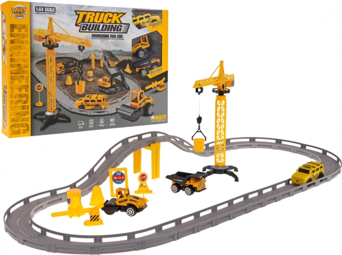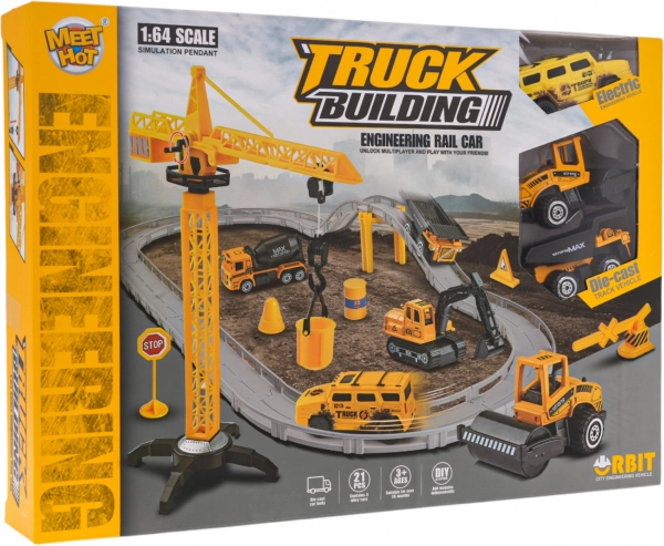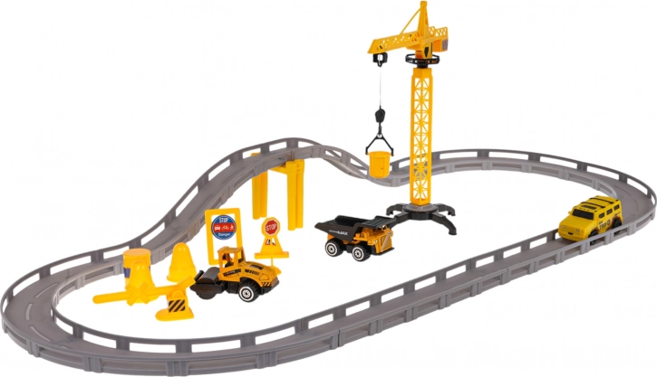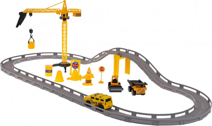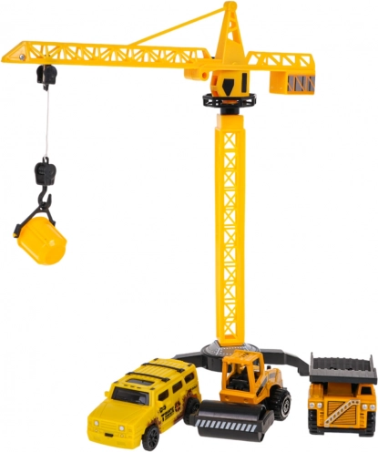 Kranen er kendetegnet ved en 360° drejearm og en manuelt betjent krog til lastning. Blandt de øvrige tilbehør er der forskellige bevægelige entreprenørbiler, såsom en tipvogn med justerbar lad og vejvalser med roterende tromler. Den elektriske bil drives af 1 x AA 1,5 V batteri (batterier medfølger ikke).