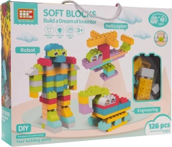 Sættet indeholder 126 bløde klodser lavet af sikker PVC, uden skarpe kanter og lette at håndtere. Klodserne er designet i levende farver, der betager og stimulerer børns fantasi. De er meget nemme at vedligeholde: efter kogning bevarer de deres farve og kan bøjes, hvorefter de vender tilbage til deres oprindelige form.