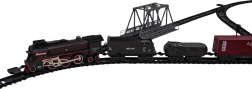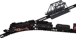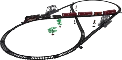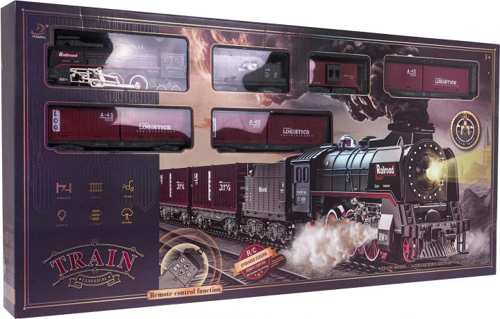 Retro togsæt med røgfunktion, kørselslyde og skinner i pakken er velegnet til børn fra 3 år. Legetøjet drives af et genopladeligt batteri 3,7 V (inkluderet), fjernbetjeningen bruger 2 x AA 1,5 V batterier (ikke inkluderet). Fjernbetjeningen fungerer også som en af vognene. Under kørsel udsender lokomotivet røg fra skorstenen og langs siderne (efter påfyldning med vand – vandpipette er inkluderet i sættet), og forlygten foran lyser. Skinnerne er lette at samle, sikre og robuste i brug. .. Sættets funktioner: . - egnet til børn fra 3 år, . - røg kommer ud af skorstenen og løber ned langs siderne, .- forlygte på lokomotivets front, .- kørselslyde, .- kører frem og tilbage. |
