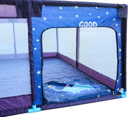 Den bløde, rektangulære legegård bliver et sikkert sted til både leg og hvile for din baby. Den lave vægt gør det nemt at flytte den derhen, hvor du har brug for den, uanset om det er i stuen eller ude i haven. De netbeklædte sider giver et fremragende overblik over, hvad der sker både i og omkring legegården, og sikrer optimal luftcirkulation.