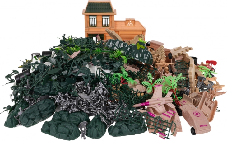 Et komplet militært univers i én pakke: 250 soldater i 3 farver og 2 størrelser, køretøjer, fly, skibe samt base og realistiske forhindringer til spændende missioner.