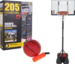 Køber du denne justerbare basketballkurv til børnene, får du et komplet sæt til både leg og træning. Den lette, men robuste bagplade tåler gentagne skud, stålringen med nylonnet giver den behagelige lyd ved hver scoring. Takket være højdejustering fra 145 til 205 cm passer den til både mindre og større spillere.