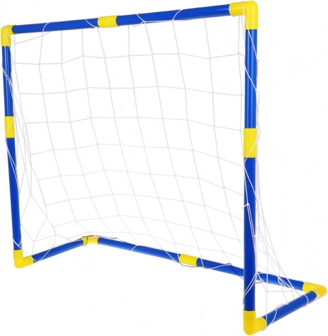 - Komplet udstyr: mål med net, bold, pumpe og 6 markeringsveste (3 gule, 3 hvide).