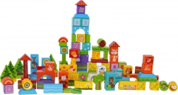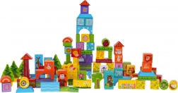 Denne træbyggesæt er et tidløst legetøj for både drenge og piger. Klodserne er holdbare, behagelige at røre ved og takket være den omhyggelige finish uden skarpe kanter holder de til mange års leg. De forskellige former og farver stimulerer fantasien – børn bygger let små huse, tårne og køretøjer, mens tryk med dyr, bogstaver og former naturligt understøtter læring.