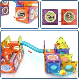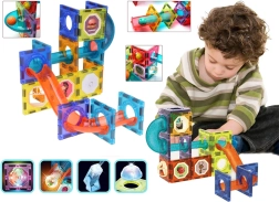 Det magnetiske byggesæt med 49 dele forener skaben, lyseffekter og dynamikken fra en kuglebane. Gennemsigtige blå, orange og gule elementer forbindes nemt og danner 3D-konstruktioner med tunneler, broer og kurver. Lysende kugler og belyste moduler giver legen et effektfuldt udtryk og vækker børns nysgerrighed.