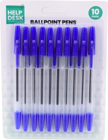 Praktisk sæt med 10 blå kuglepenne med 1 mm spids til daglig skrivning. Behageligt greb, hurtigtørrende blæk og jævn streg sikrer rene og letlæselige noter derhjemme, i skolen og på kontoret.