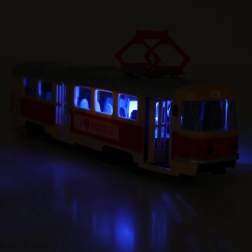 Denne tram er 28 cm lang, fremstillet af plast af høj kvalitet og kører med frihjul. Legetøjet giver mulighed for manuel åbning af dørene, som lukkes med en knap på tagets overflade. Hver gang dørene åbnes, afspilles annoncering på tjekkisk, hvilket øger autenticiteten.