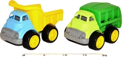 Oplev byggeleg med en praktisk lille bygge-lastbil på 16 cm. Takket være de frie hjul kører den let på forskellige underlag, og den kompakte størrelse passer perfekt til små børnehænder. Vælg mellem tre attraktive varianter – tipbil, autohjælp og skraldebil – der stimulerer fantasi og temaleg.