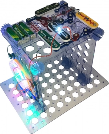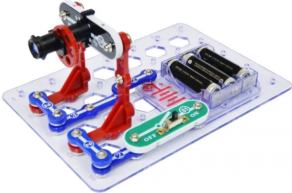 Alle dele klikkes nemt fast i det transparente gitter. Bygningen er hurtig, overskuelig og ideel til de første skridt i elektronik.