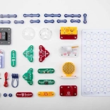 - 1× plade, 35× komponenter (fx fly, mini-bil, højttaler, bevægelsesdetektor, motor med gear), 1× manual (til download online)