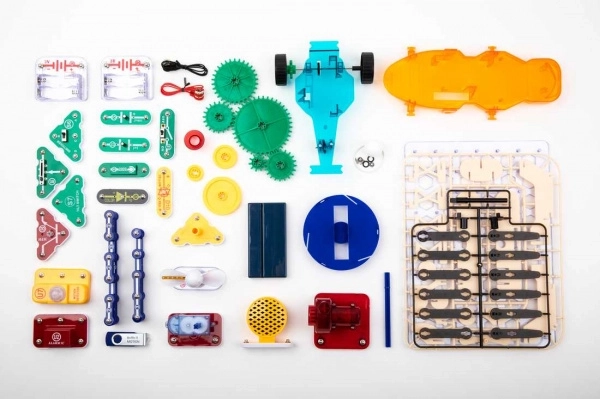 Dusiner af forskellige moduler og stik guider dig til at skabe dine egne elektriske kredsløb og udvide dine horisonter inden for STEM.