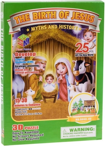 3D-puslespillet af Jesu fødested er lavet af et særligt materiale – cirka 3 mm tykt skum belagt med lamineret, trykt papir. Samlingen af den rumlige model vil underholde både den erfarne puslespiller og begynderen. Brikkerne samles uden brug af lim og saks – de forstansede brikker trykkes blot nemt ud af arket. Det færdige puslespil bliver et samler- og dekorativt element i hjemmet, på kontoret eller på børneværelset.
