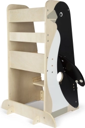 Tårnet har højdejusterbar platform og trin, så det nemt kan tilpasses barnets vækst. De smarte, foldbare “vinger” på pingvinen giver desuden praktisk opbevaringsplads til viskestykker og småting, så I har alt ved hånden. Anbefales til børn fra 2 år; barnet skal altid være under opsyn af en voksen.