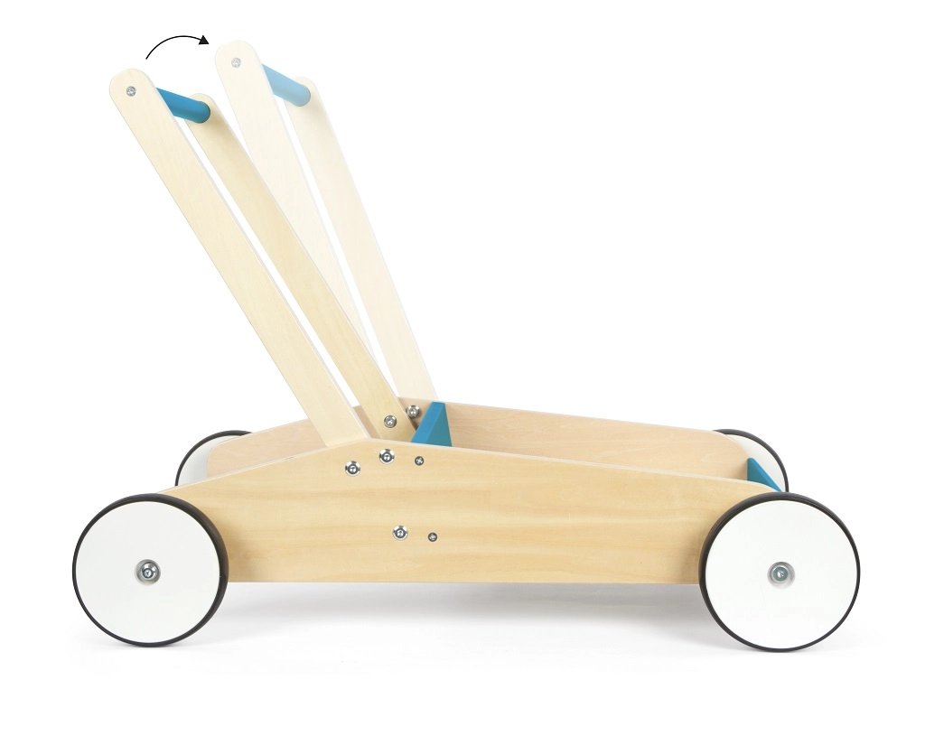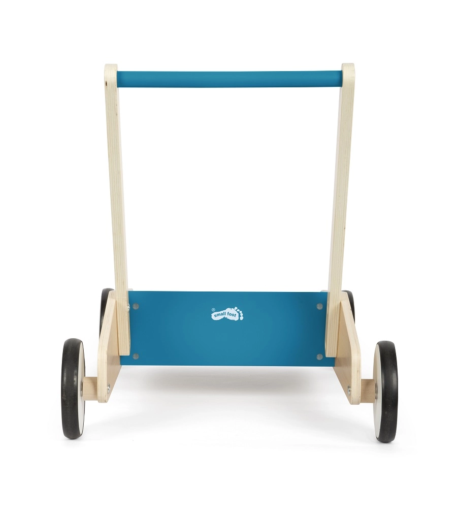 Stabilt og stilfuldt børnewalker i naturtræ i petroleumblå farve støtter de første skridt med tryghed og glæde. Tilbyder integreret bremsesystem, gummibelagte, stille hjul, højdejusterbart håndtag... Vis mere