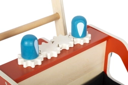 For sjov og udvikling af finmotorikken sørger de funktionelle detaljer: tandhjul, drejehjul med håndsving og bevægelige blå lys. Den aftagelige filtkurv fungerer som opbevaringsplads til legetøj og småting, så hver udrykning er hurtig og velorganiseret.