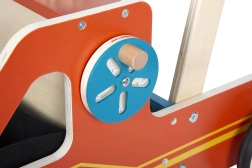Tandhjul, drejehjul med håndsving og bevægelige blå lys engagerer børn i legen og udvikler hånd-øje-koordination og finmotorik.