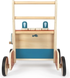 Den solide trækonstruktion og det integrerede bremsesystem giver børn tryghed både under gang og ved hurtigere kørsel. De fire brede hjul sikrer stabilitet på forskellige underlag.
