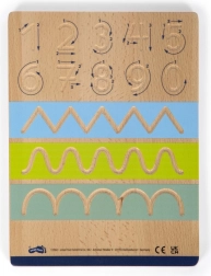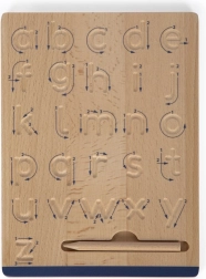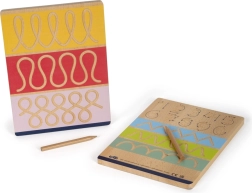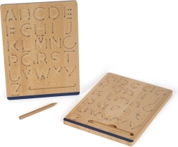 Small foot Educate-sættet er et ideelt redskab til førskolebørn og yngre skolebørn, der lærer de første streger. To dobbeltsidede træplader tilbyder fire forskellige øvelser: bogstaver, tal og præsksriftsmønstre. At følge de fræsede riller med pile lærer naturligt den korrekte rækkefølge af streger og støtter håndens hukommelse.