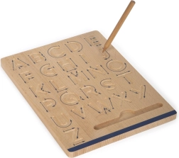 Den solide udførelse i FSC®-certificeret træ er holdbar og behagelig at røre ved. Den integrerede blyantholder holder redskaberne lige ved hånden, og de to sikre træblyanter uden stift muliggør ren gentagelse uden papir. Perfekt til øvning derhjemme, i børnehaver og i skolens førskoletimer.