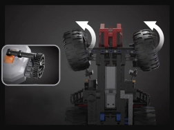 To M-motorer, en L-motor og en præcis servomekanisme sikrer kørsel frem/tilbage og nøjagtig styring. Hæv det bageste træk og drej beslaget 180° på afstand.