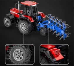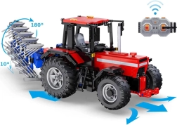 Efter samling får du en fjernstyret traktor med detaljeret cockpit, hvor en vippe fungerer som hovedafbryder. Du vil sætte pris på justering af rat og sæde, bevægelige skærme, åbningsbar motorhjelm og mulighed for montering af ekstra tilbehør. Der medfølger løft af det bageste træk og rotation af fastgørelsen på 180°, hvilket trofast efterligner virkelige landbrugsoperationer.
