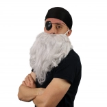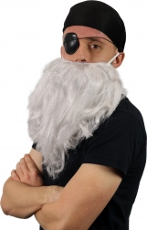 De lange hvide skæg og den sorte øjenklap skaber en markant piratkarakter uden besværlig makeup.