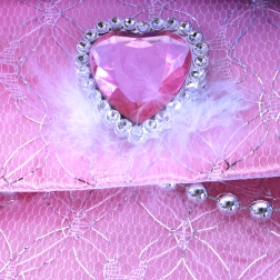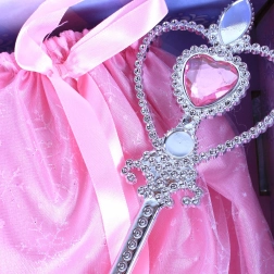 Eksklusivt lyserødt sæt til små prinsesser, der fuldender ethvert kostume til perfektion. Indeholder skørt, sko, krone, scepter, øreringe, ring, halskæde og taske – alt smukt afstemt og pyntet med lyserøde sten for maksimal effekt. Ideelt til fastelavn, fester og leg derhjemme. Gør dit kostume komplet med smukke accessories i ensartet stil og nyd et glitrende prinsesselook.