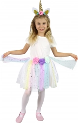 Sødt enhjørninge-kostume til børn i alderen 3–10 år, ideelt til udklædningsleg og temafester.