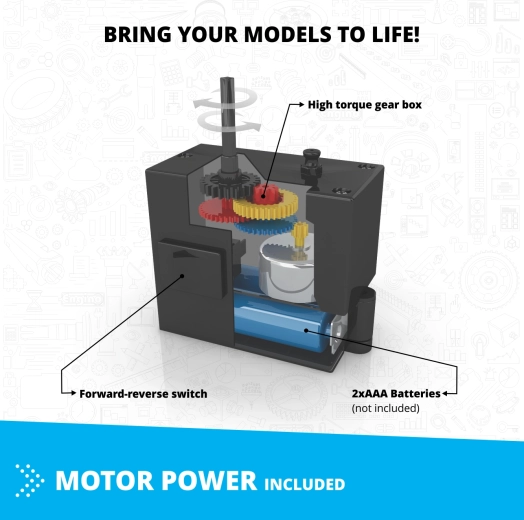 Takket være den kraftige motor med gearkasse og højt drejningsmoment vækkes dine modeller til live med bevægelse. Byggesættet understøtter STEM-principperne (videnskab, teknologi, ingeniørfag, matematik) og motiverer børn til at eksperimentere og skabe deres egne konstruktioner.