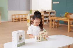 PolarB træblender er ikke kun en smuk tilføjelse til børnekøkkenet, men også et legetøj, der hjælper børn med at udvikle færdigheder og kreativitet. Med en løftearm for nem indsættelse og fjernelse af skål, drejeknap og roterende blender, efterligner den virkelige køkkenredskaber.