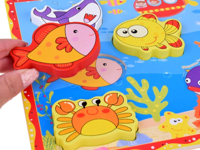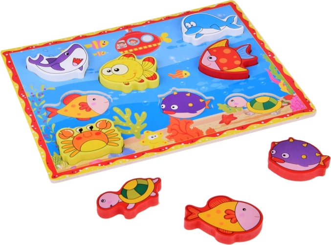 Legen er en fremragende træning af tålmodighed og øje–hånd-koordination. Børn matcher former med de tilsvarende billeder, styrker koncentrationen og udvider ordforrådet med navne på dyr som fisk, haj, krabbe og skildpadde.
