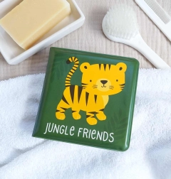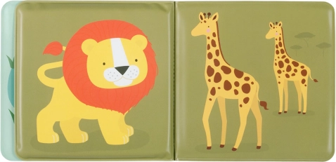 Denne farverige badebog sørger for underholdning selv under vask. På siderne møder børn en venlig elefant, abe og giraf, som støtter udviklingen af fantasi samt opfattelsen af farver og former. Den bløde polstring sikrer et behageligt greb selv for de allermindste.