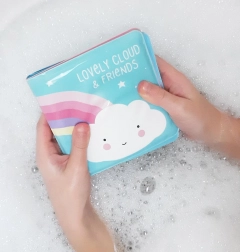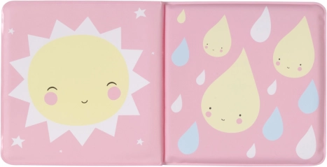 Denne vandafvisende badebog forvandler aftenbadet til en hyggelig rutine. Farverige illustrationer med skyer, små stjerner og regndråber stimulerer nysgerrighed og sanseudvikling, mens de bløde, polstrede sider er behagelige at røre ved og sikre til leg i badet.