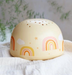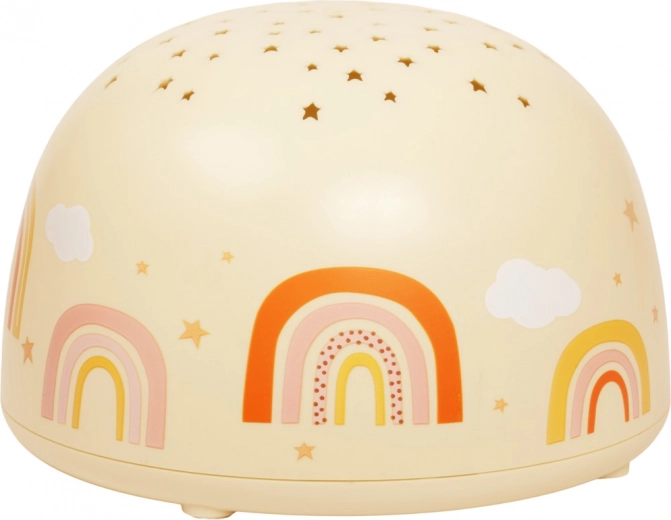 Denne vaniljegule natlampe med regnbuemotiv projicerer stjerner på vægge og loft i børneværelset og hjælper børn med at falde roligt i søvn. Takket være de kompakte mål er den nem at tage med, og den trådløse batteridrift gør den til det perfekte tilbehør til ethvert børneværelse.