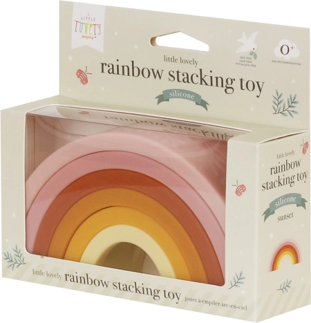 Denne stable-regnbue i fødevaregodkendt silikone understøtter udviklingen af finmotorik, logik og fantasi. Takket være det bløde og holdbare materiale er den ideel til flere aldersgrupper, inklusive babyer. Brug den derhjemme, i badet eller udenfor i sandkassen.