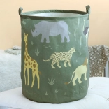 En stilfuld kurv fra A Little Lovely Company med print af savannens dyr hjælper med at holde legetøj, puder og vasketøj samlet. Takket være det holdbare materiale og den indvendige PE-belægning holder den formen, er ikke gennemtrængelig og er nem at vedligeholde – det er nok at tørre den af med en fugtig klud.