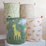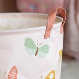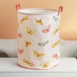 Praktisk og rummelig opbevaringskurv med sommerfuglemotiv, der hjælper med at holde børneværelset pænt. Takket være den indvendige PE-belægning er den også velegnet til vasketøj. Et let, sammenklappeligt og samtidig dekorativt tilbehør til børneværelset.